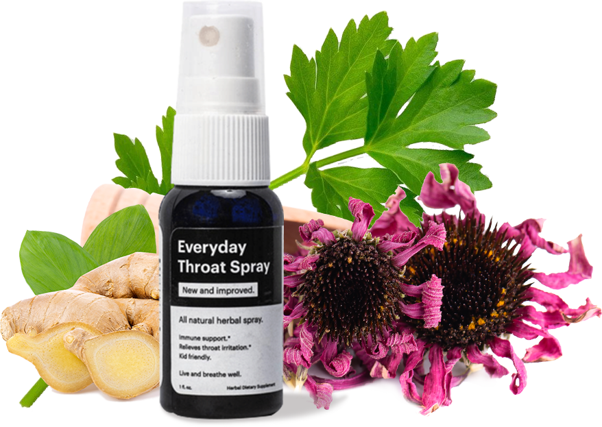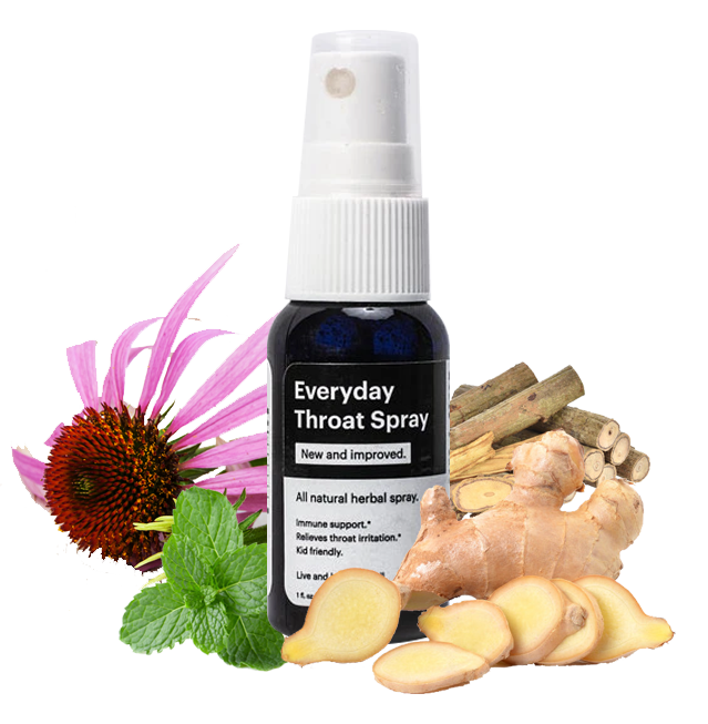 Everyday Throat Spray is a blend of 6 science-backed all-natural, organic and wild-harvested herbs. It’s combined with Colloidal Silver to help soothe your sore throat. And, you’ll boost your immune system.